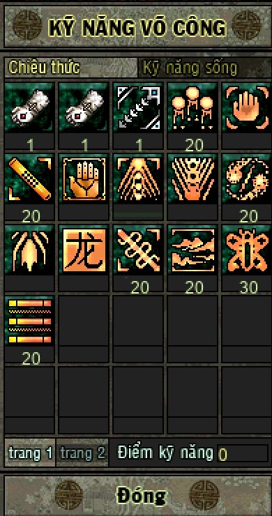 Lưu ý: Đây chỉ là hướng dẫn tổng quan, mỗi nhân sỹ sẽ có sự lựa chọn cho riêng mình trên con đường hành tẩu giang hồ.